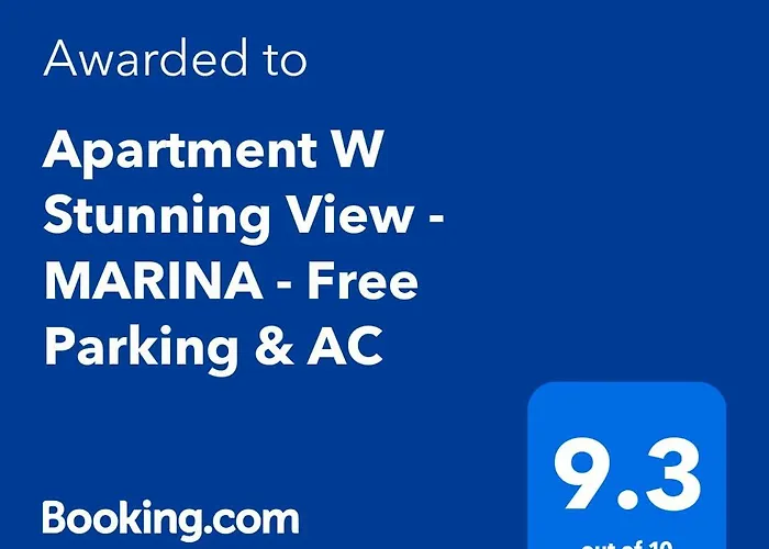 O Apartment W Stunning View - Marina - Free Parking & Ac oferece vistas para o mar e inclui área de estar, varanda e cozinha totalmente equipada equipados com máquina de lavar, controle de temperatura e paredes à prova de som. O apartamento oferece aos hóspedes a conveniência de secador de cabelo, lençóis de banho e toalhas na casa de banho. Bidé, chuveiro de corrediça e casa de banho separada também podem ser encontrados.